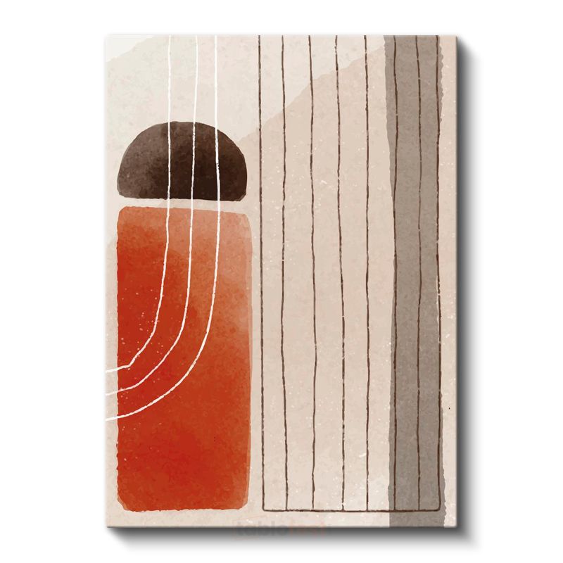 Dikey Ritim - Kırmızı Blok ve İnce Çizgiler Minimalist Kanvas Tablo