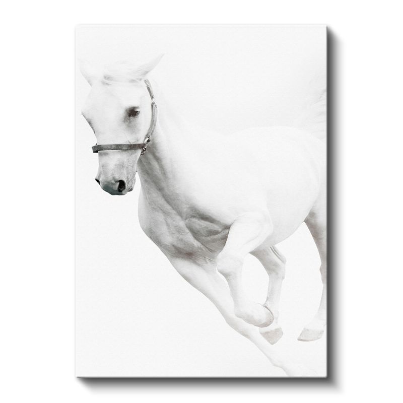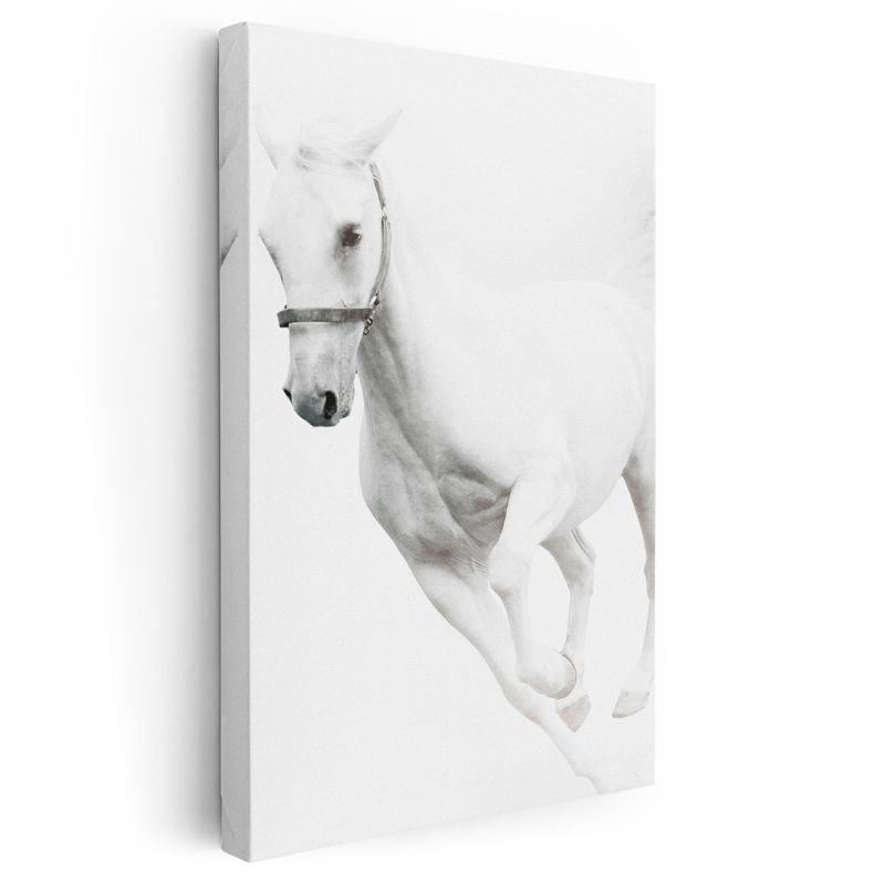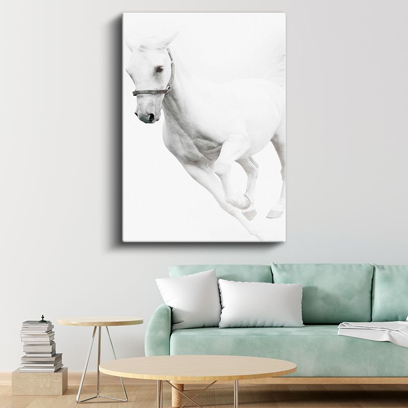 Dinamik Beyaz At - Güçlü Koşu Anı Kanvas Tablo