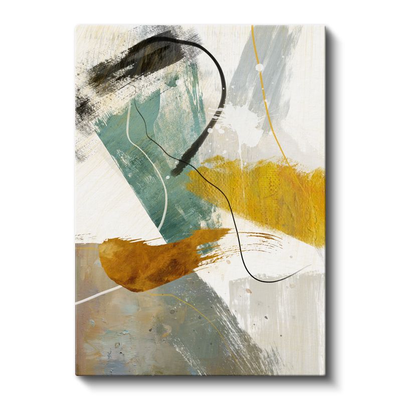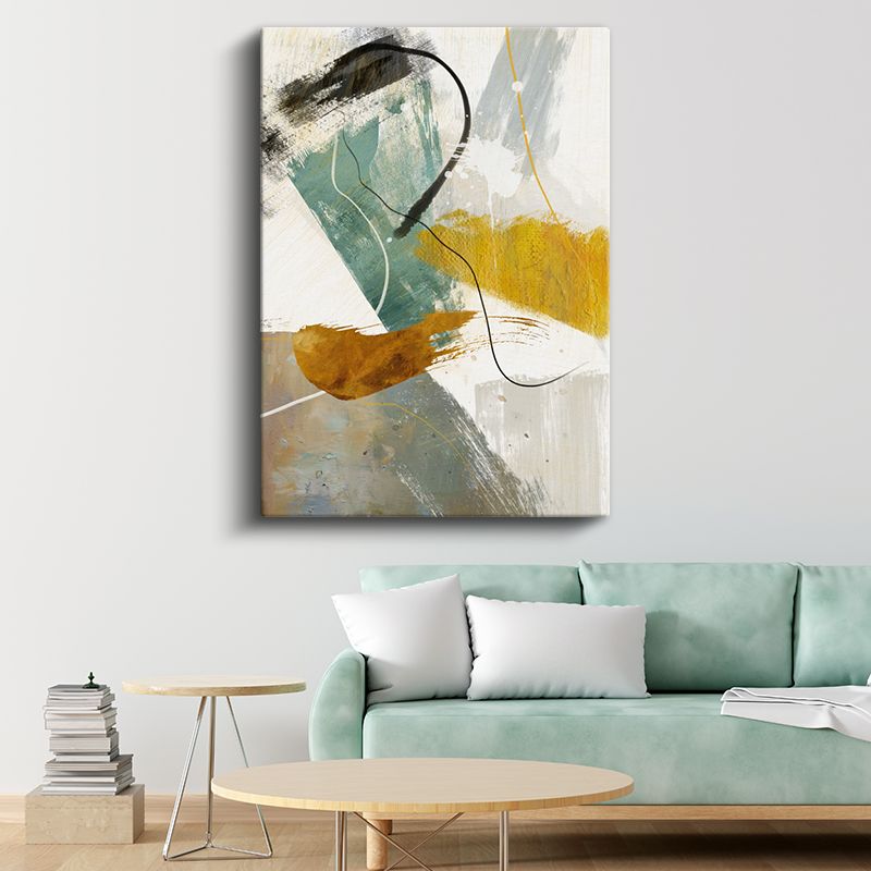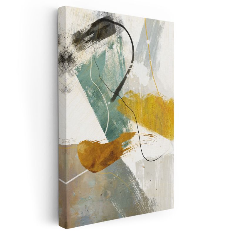 Dinamik Denge - Turkuaz ve Amber Tonlarında Soyut Fırça Darbeleri Kanvas Tablo