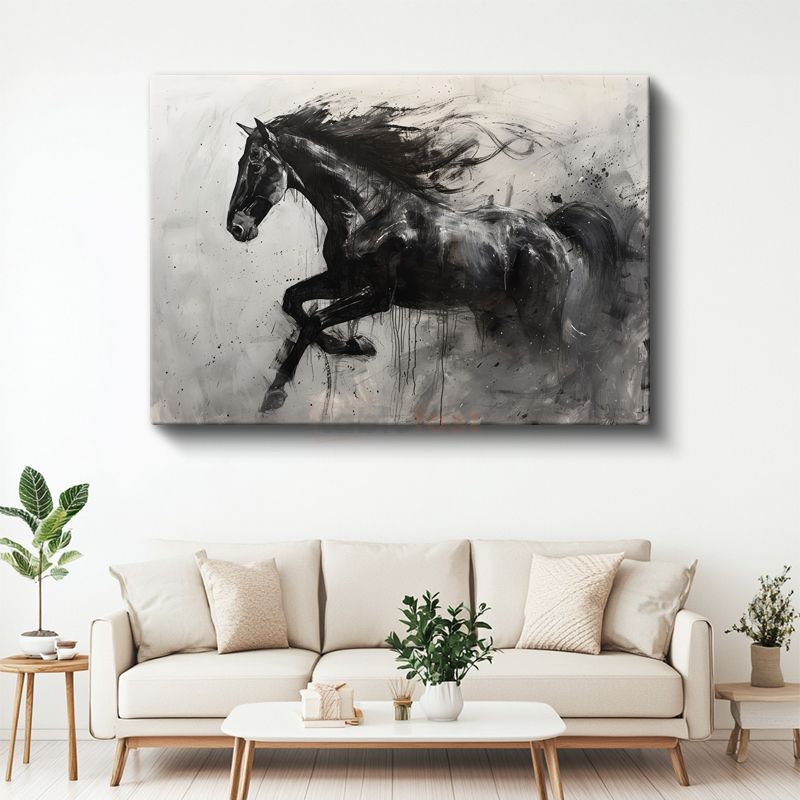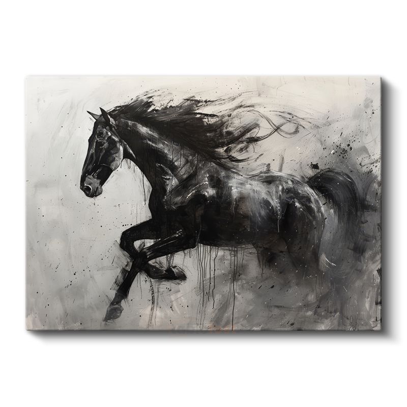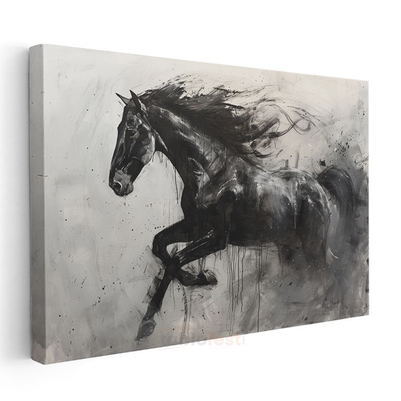Dinamik Siluet - Fırça Darbeleriyle Siyah At Kanvas Tablo