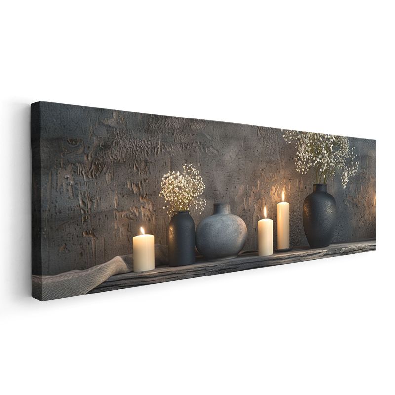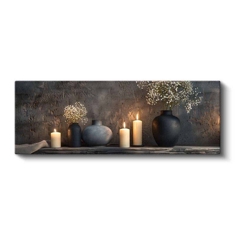 Dingin Anlar - Siyah Vazolar ve Beyaz Mumlar Kanvas Tablo