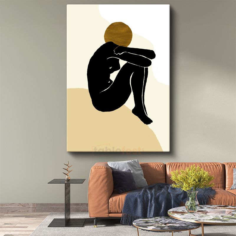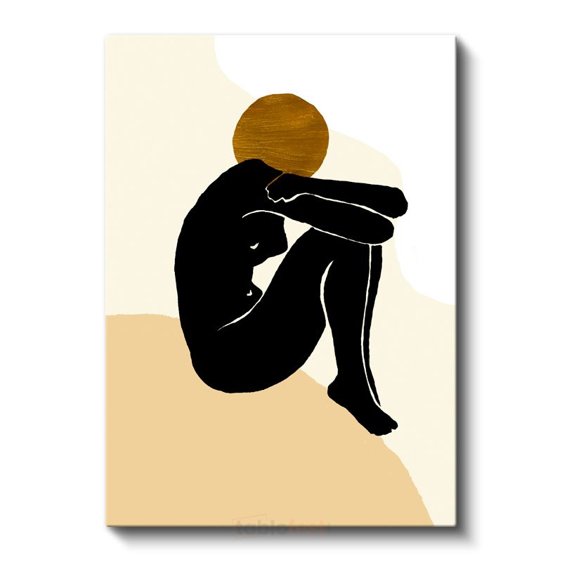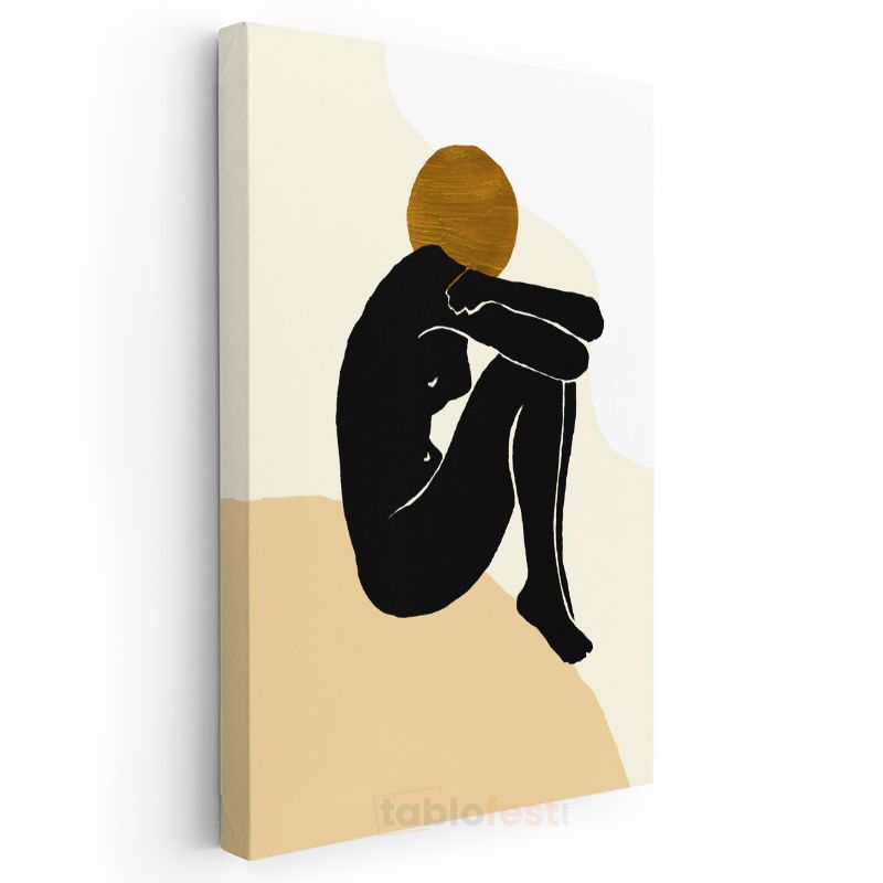 Dinginlik Silueti - Siyah Figür Altın Daire Kanvas Tablo