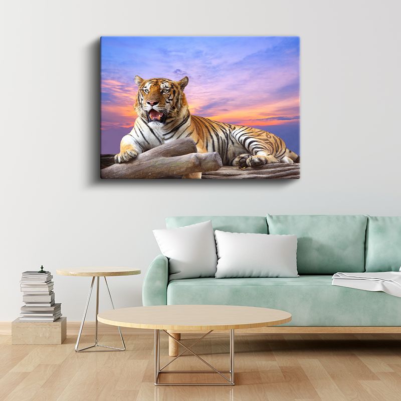 Dinlenen Kaplan - Gözleri Parlayan Çizgili Güzellik Kanvas Tablo