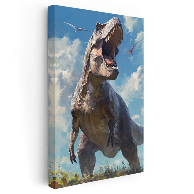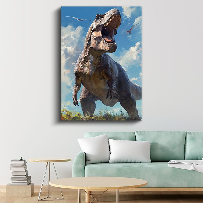 Dinozor Portresi - Gökyüzünde Keskin Dişli Avcı Kanvas Tablo