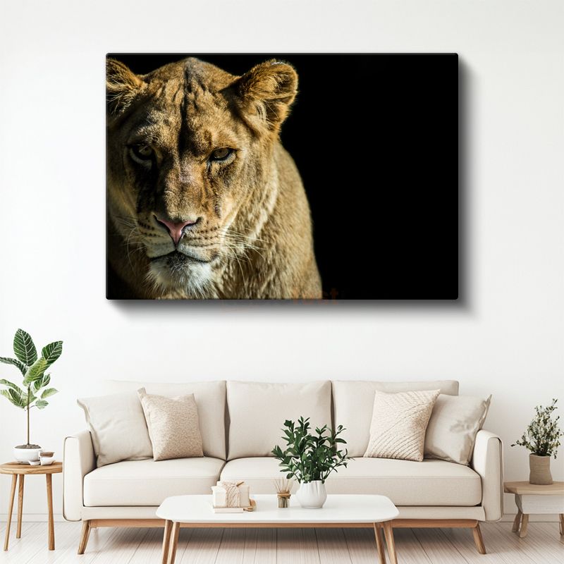 Dişi Aslan - Altın Tüylü Kraliçe Portresi Kanvas Tablo