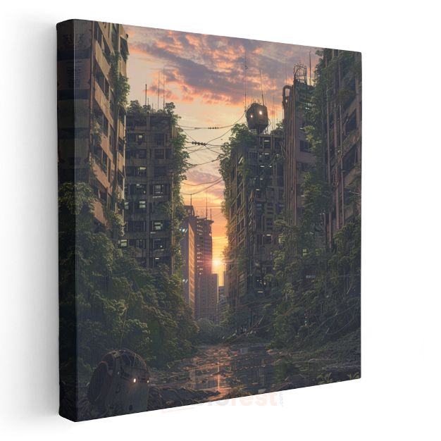 Distopik Gün Batımı - Yeşillenen Şehir Anime Kanvas Tablo