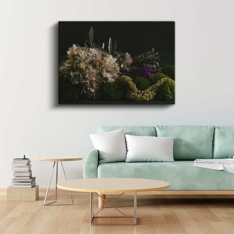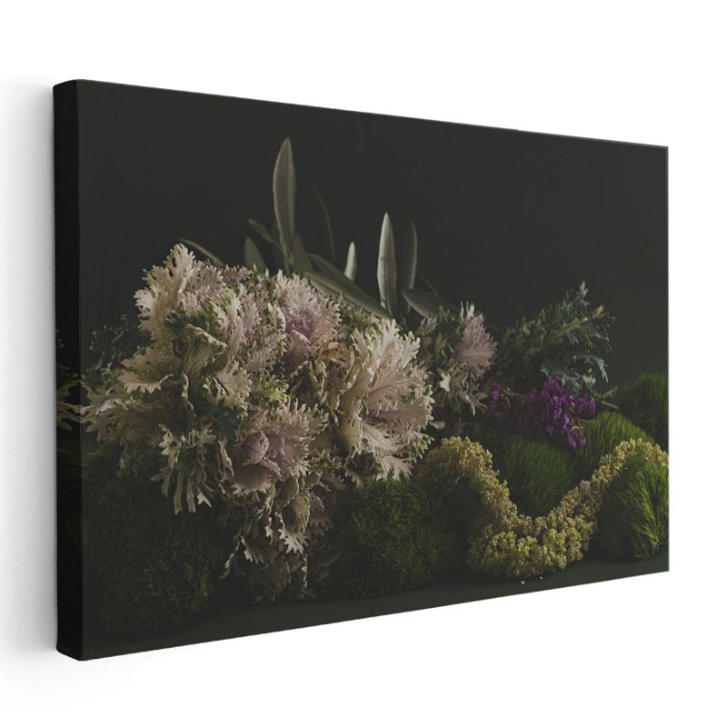Doğal Çiçek Aranjmanı - Yeşil Tonlarda Botanik Kompozisyon Kanvas Tablo