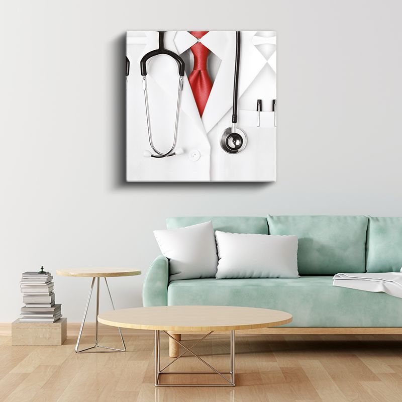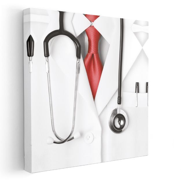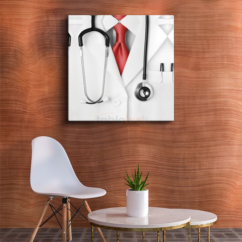 Doktor - Stetoskop ve Kırmızı Kravat Kanvas Tablo