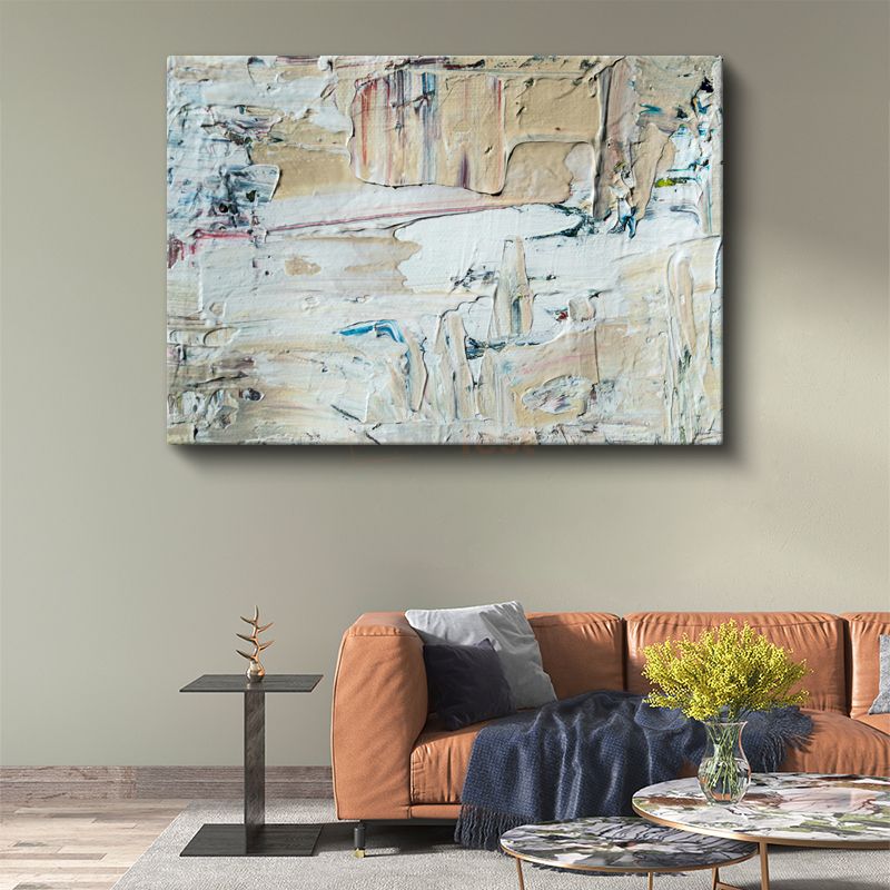 Dokulu Soyut - Bej Tonlarında Spatula İzleri Kanvas Tablo