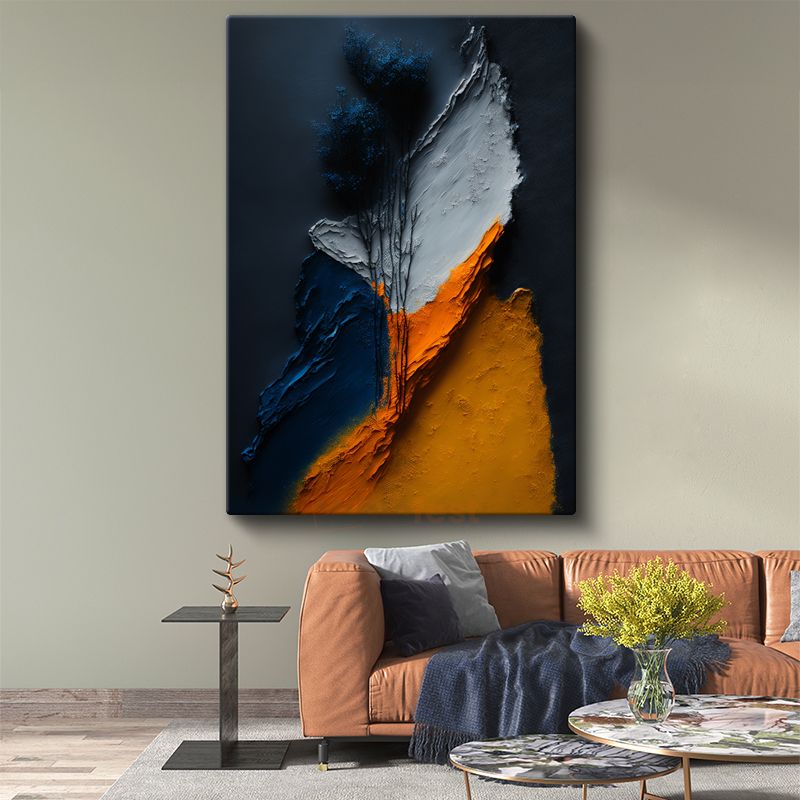 Dokusal Derinlik - Mavi ve Turuncu Katmanlı Soyut Kanvas Tablo