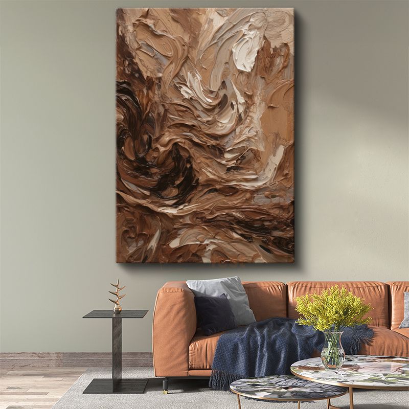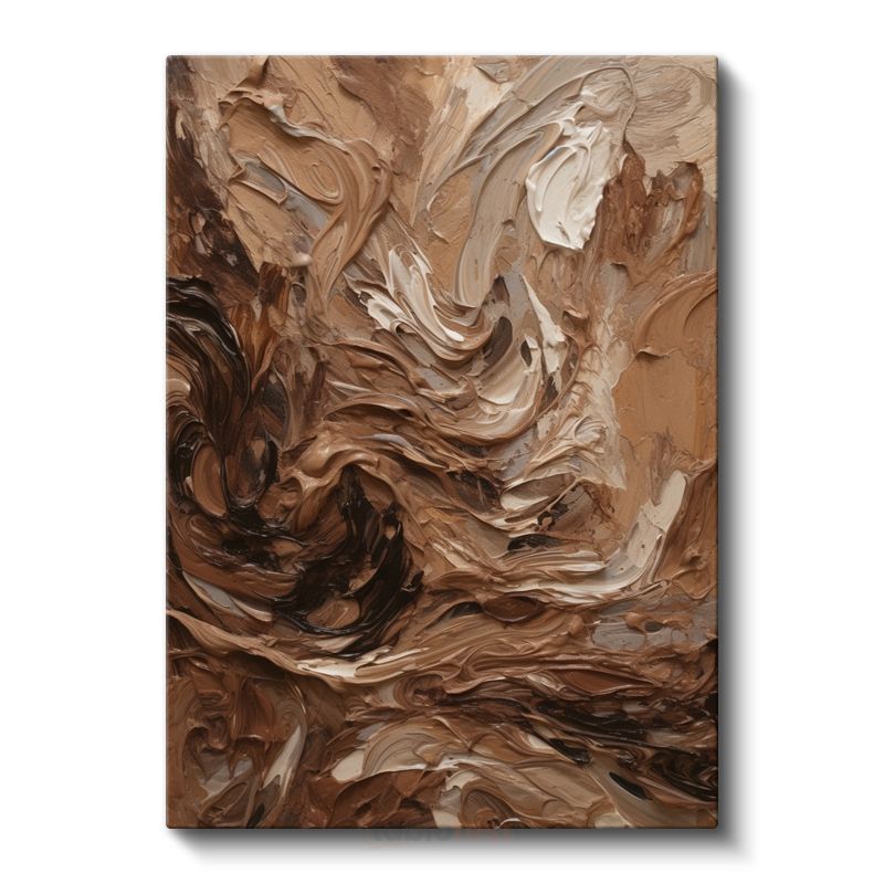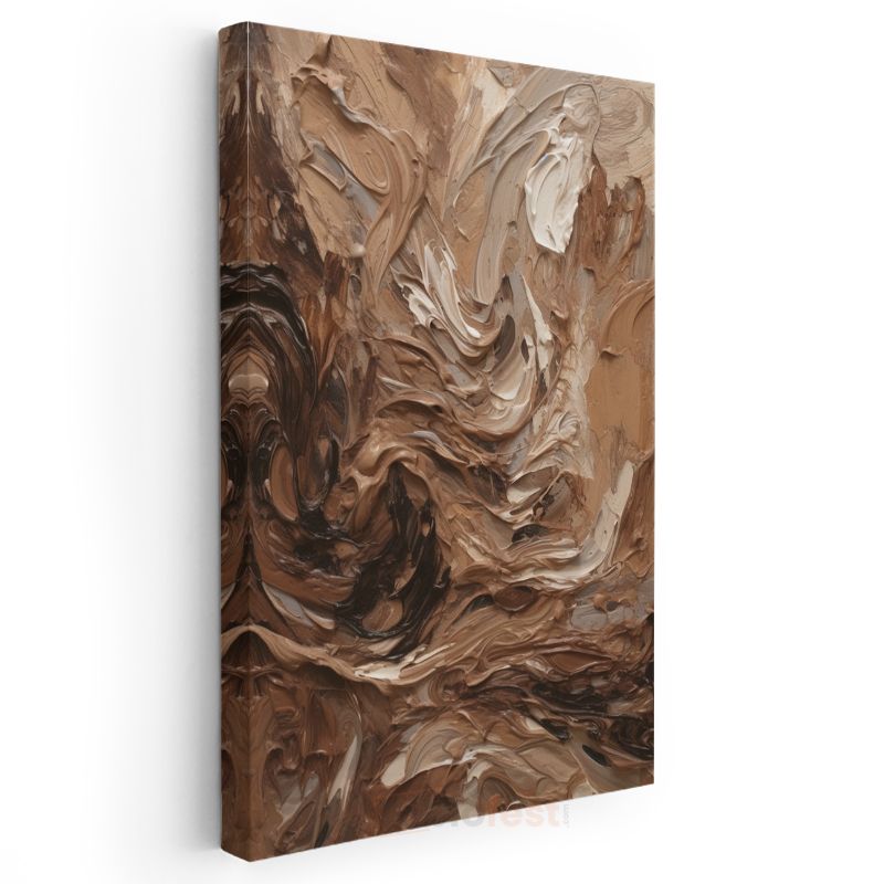 Dokusal Soyut - Kahverengi Tonlarında Spatula Tekniği Kanvas Tablo