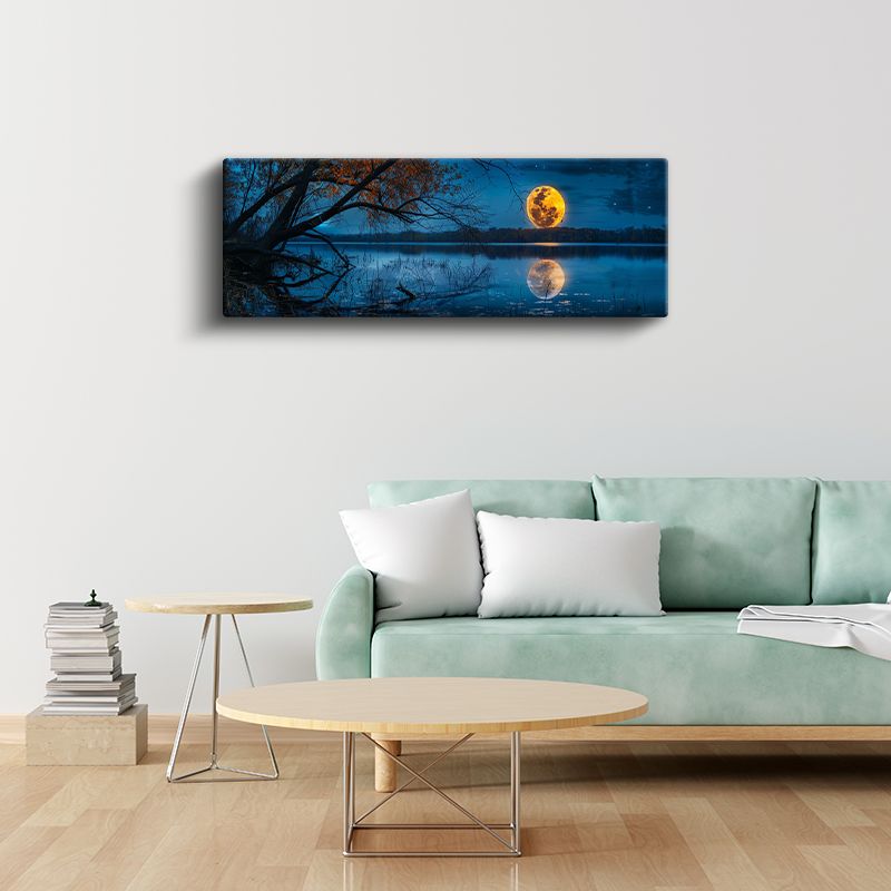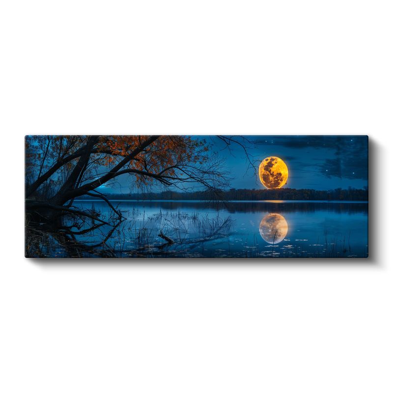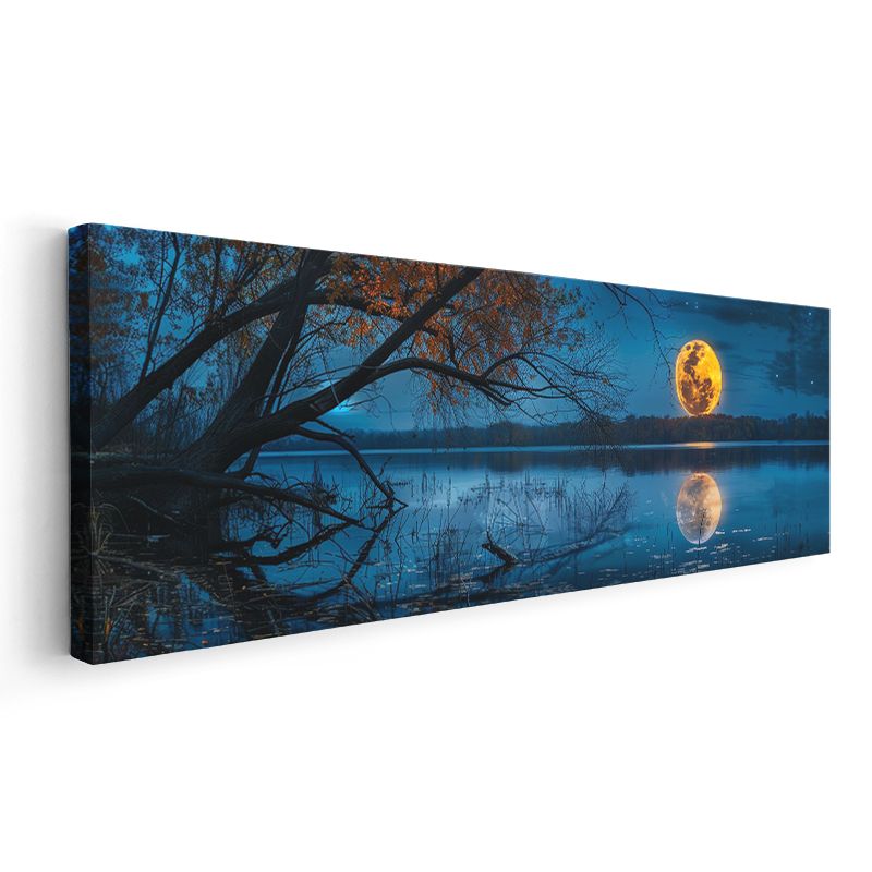 Dolunay - Gece Göl Üzerinde Parlayan Ay Işığı Kanvas Tablo