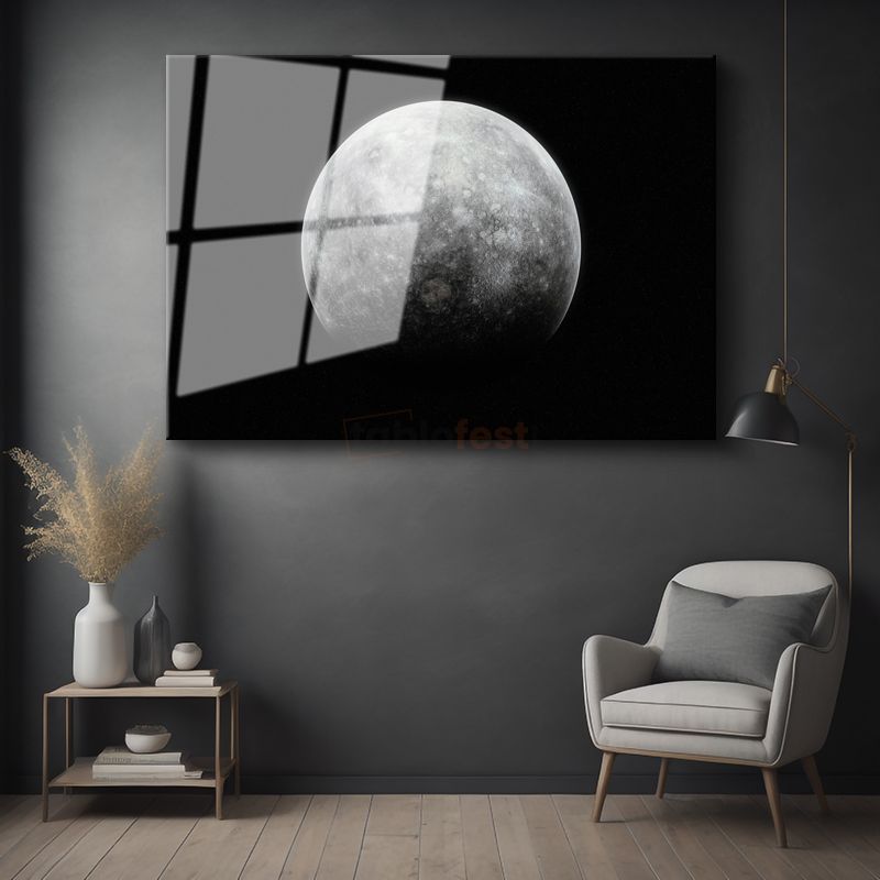 Dolunay - Gizemli Ay Yüzeyi Detayları Cam Tablo