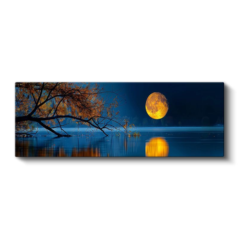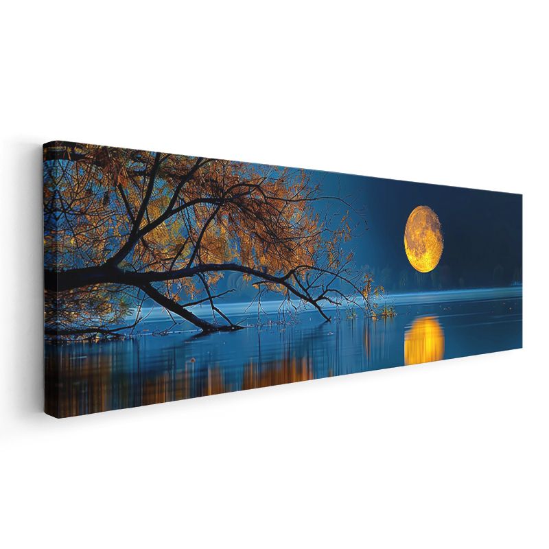Dolunay - Göl Üzerinde Altın Yansımalar Kanvas Tablo