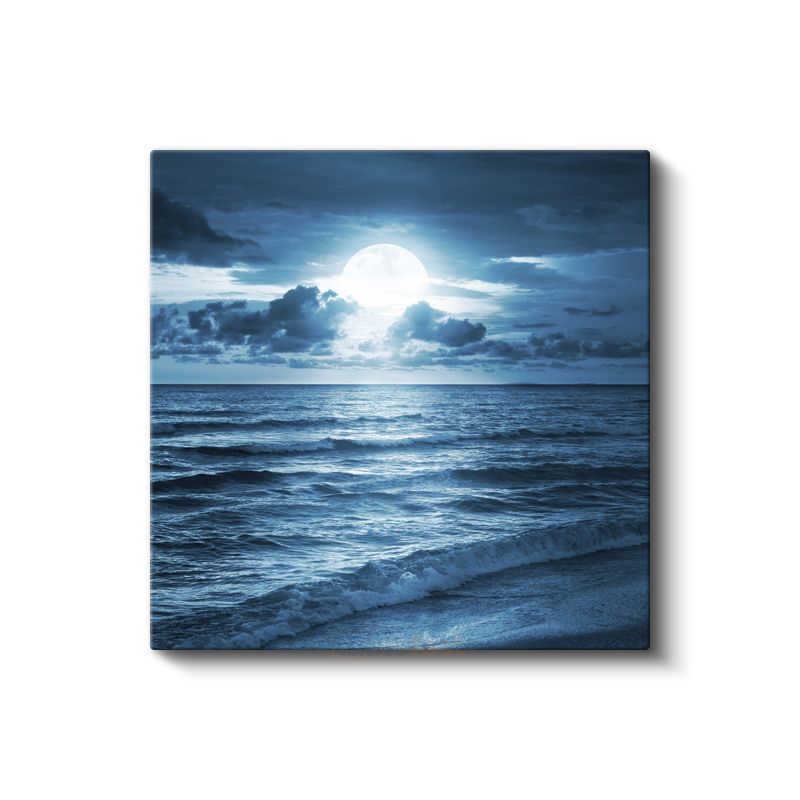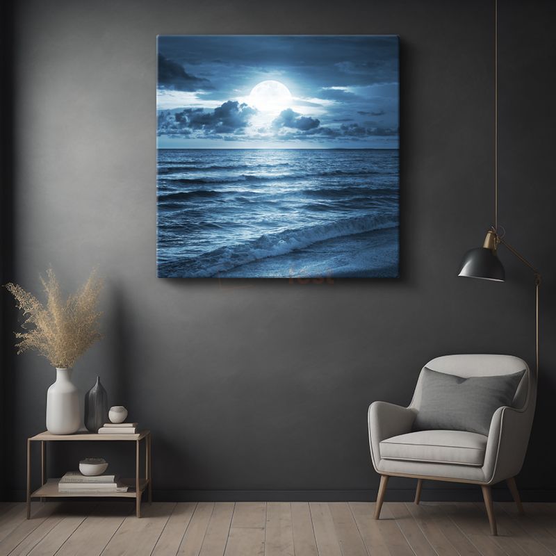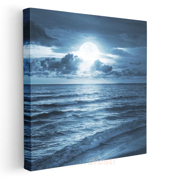 Dolunay - Huzur Veren Gece Deniz Manzarası Kanvas Tablo