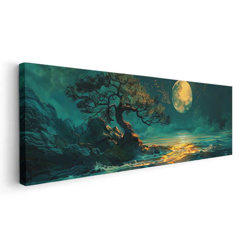 Dolunay Kıyısı - Mistik Deniz Manzarası Kanvas Tablo