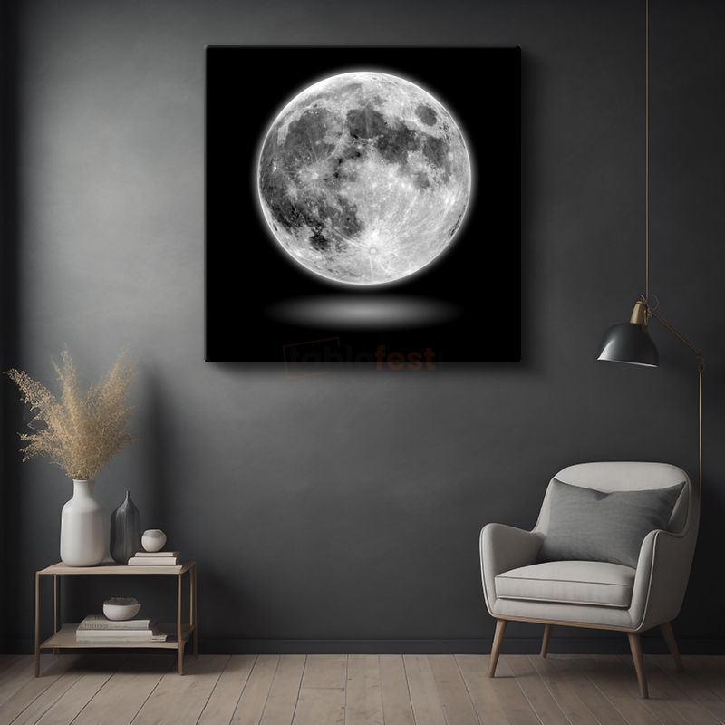 Dolunay - Siyah Gökyüzünde Parlayan Ay Kanvas Tablo
