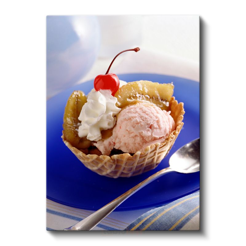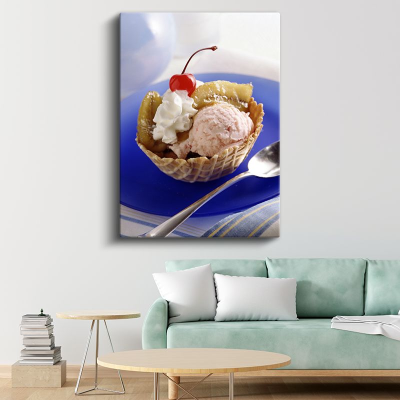 Dondurma Külahı - Taze Meyveli Waffle Tatlısı Kanvas Tablo