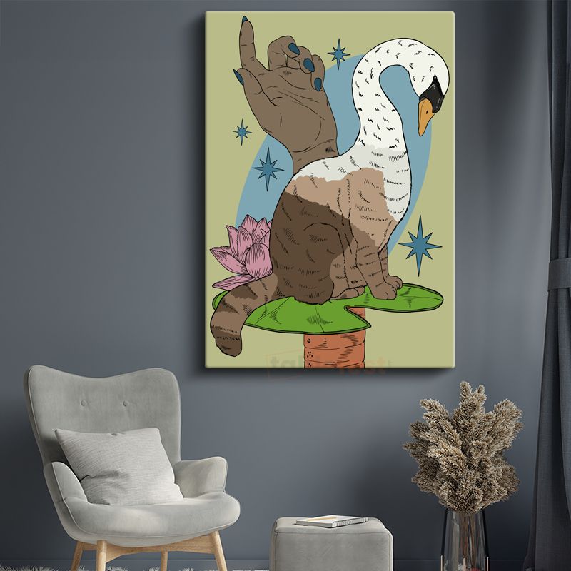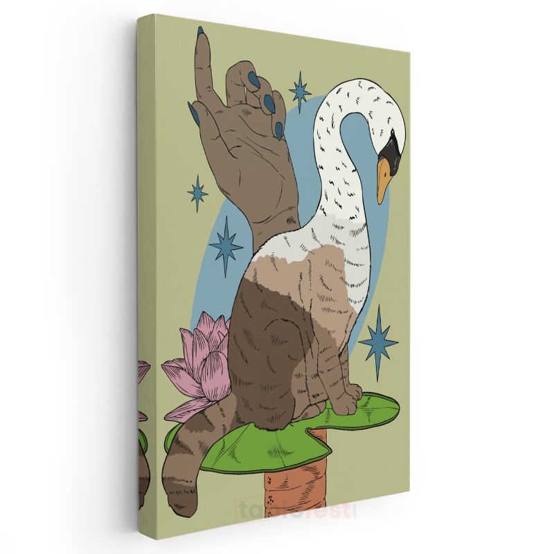 Dönüşüm Büyüsü - Kedi ve Kuğunun Mistik Birleşimi Kanvas Tablo