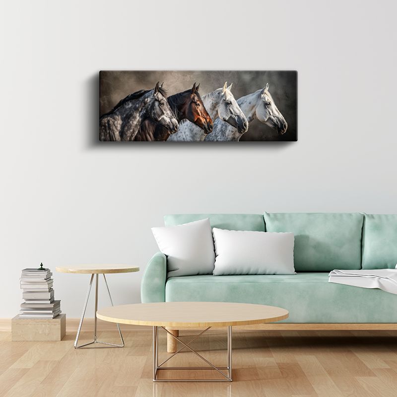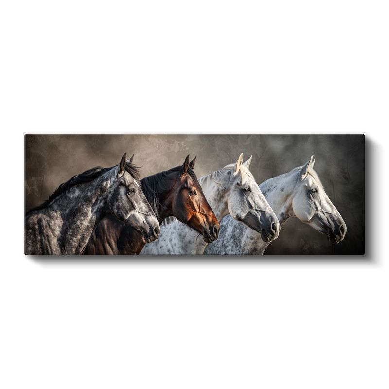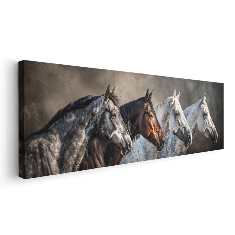 Dörtlü Portre - Farklı Renklerde Asil Atlar Kanvas Tablo