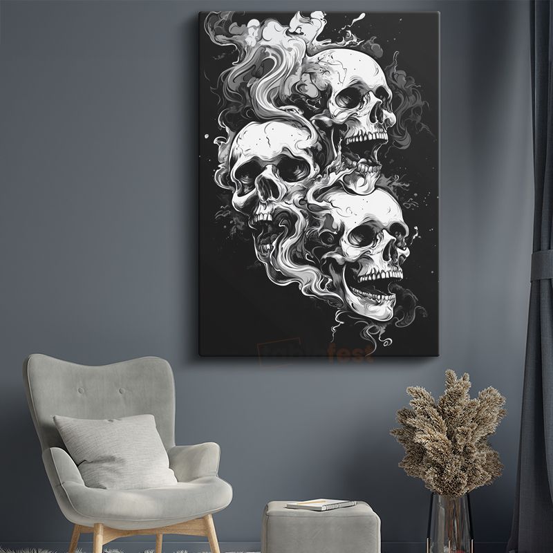 Duman Kafatasları - Ölümün Dansı ve Varoluşun Gölgesi Kanvas Tablo