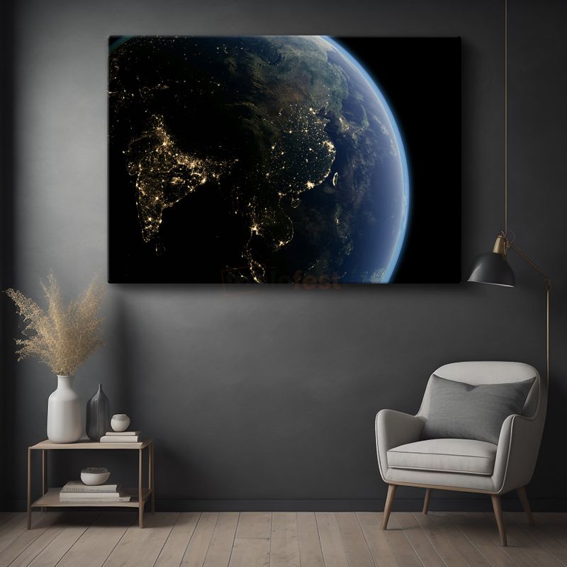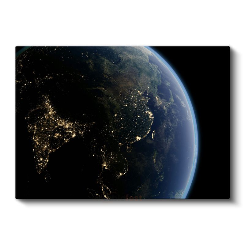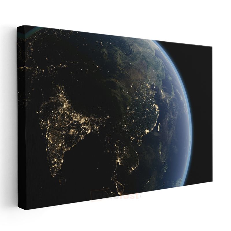 Dünya - Gece Vakti Işıldayan Şehirleriyle Mavi Gezegen Kanvas Tablo
