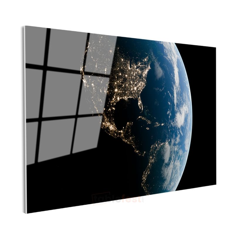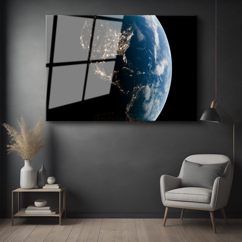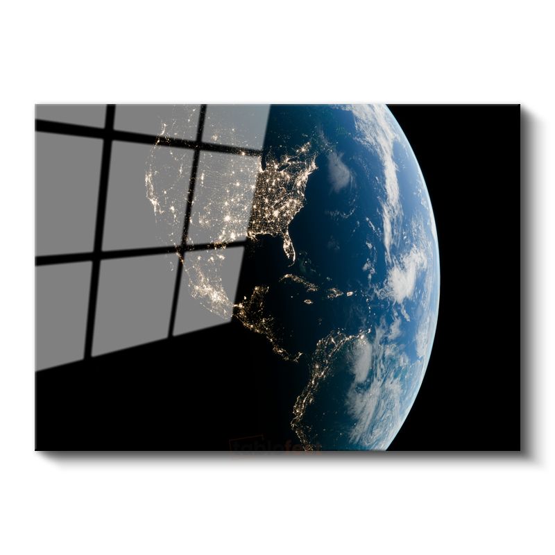 Dünya Gecesi - Uzaydan Görünen Şehir Işıkları Cam Tablo