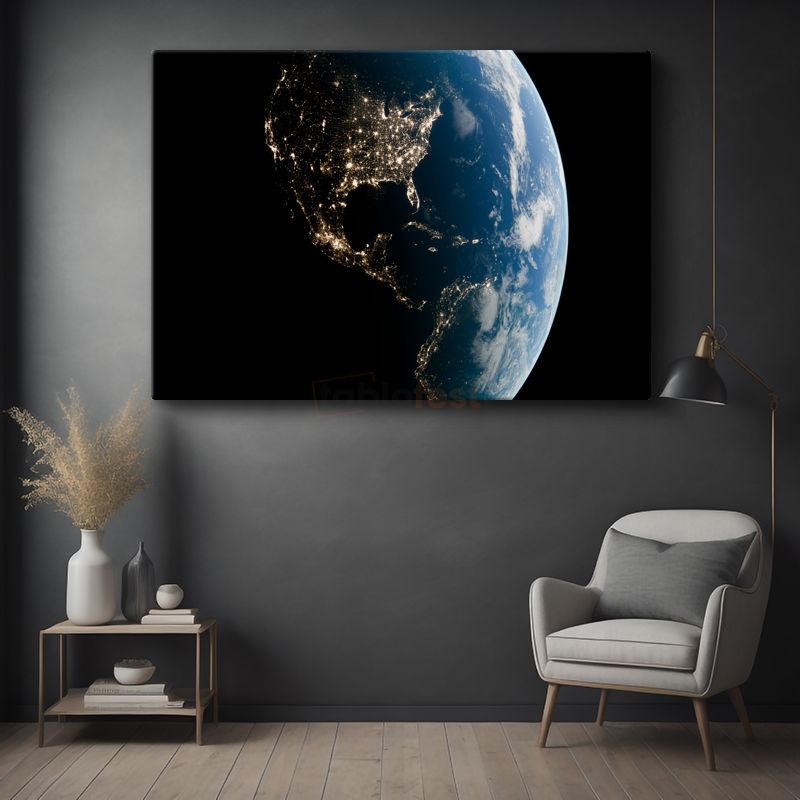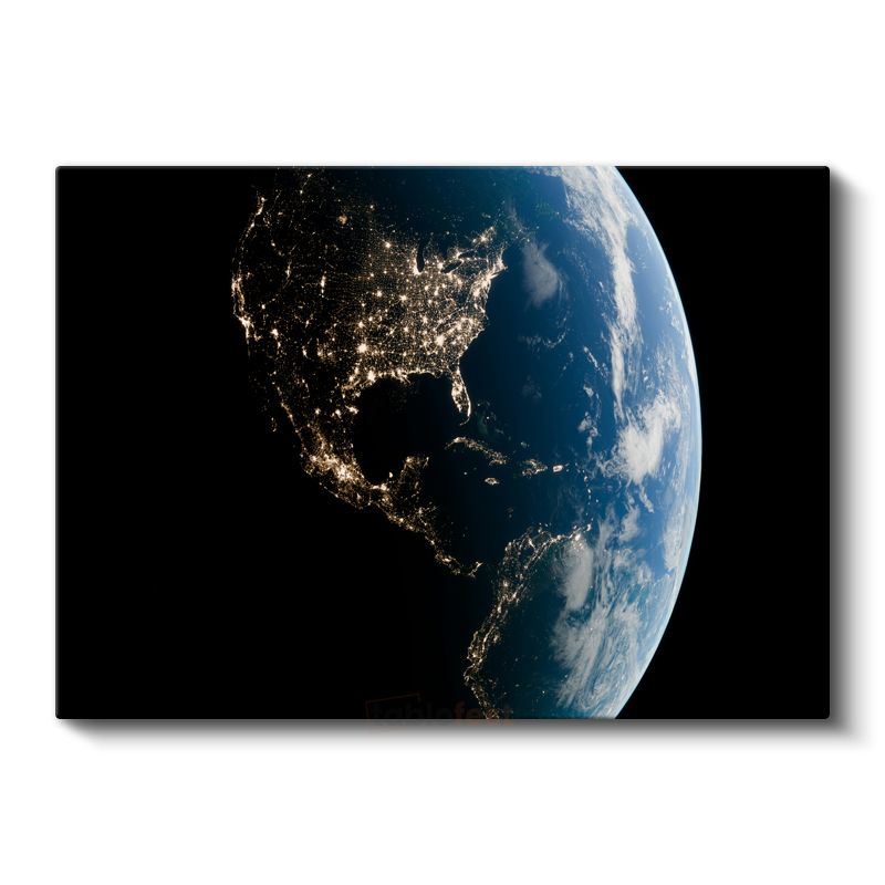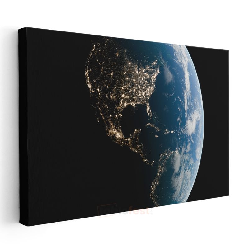Dünya Gecesi - Uzaydan Görünen Şehir Işıkları Kanvas Tablo