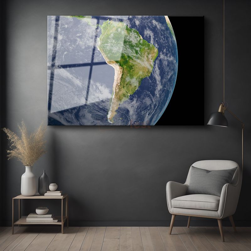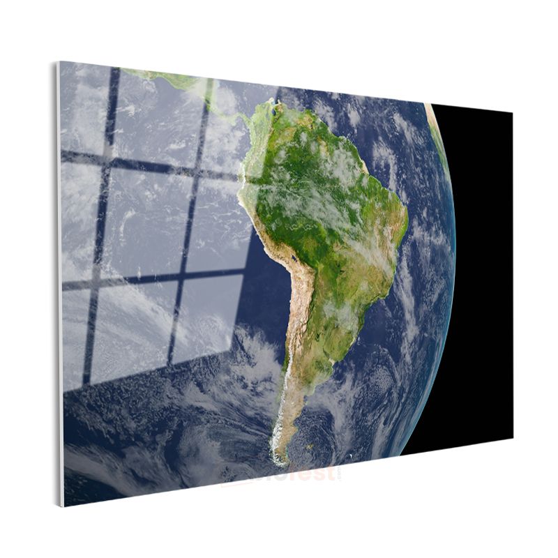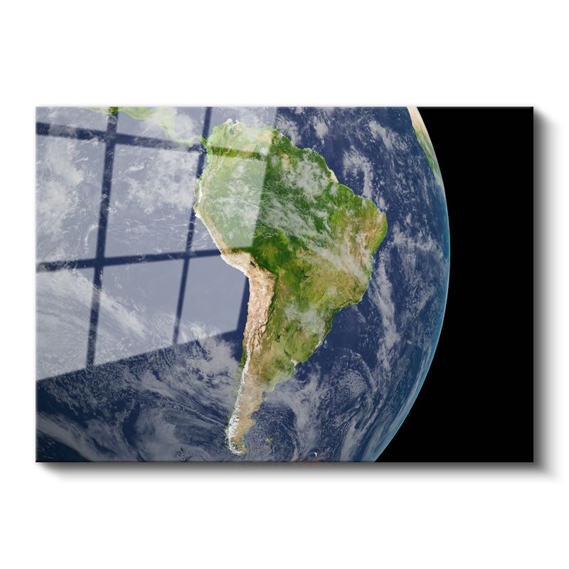 Dünya - Güney Amerika Kıtasının Uzaydan Görünümü Cam Tablo