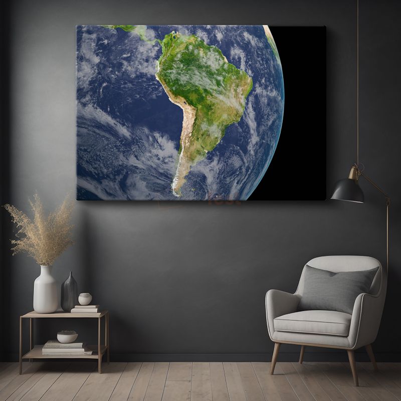 Dünya - Güney Amerika Kıtasının Uzaydan Görünümü Kanvas Tablo