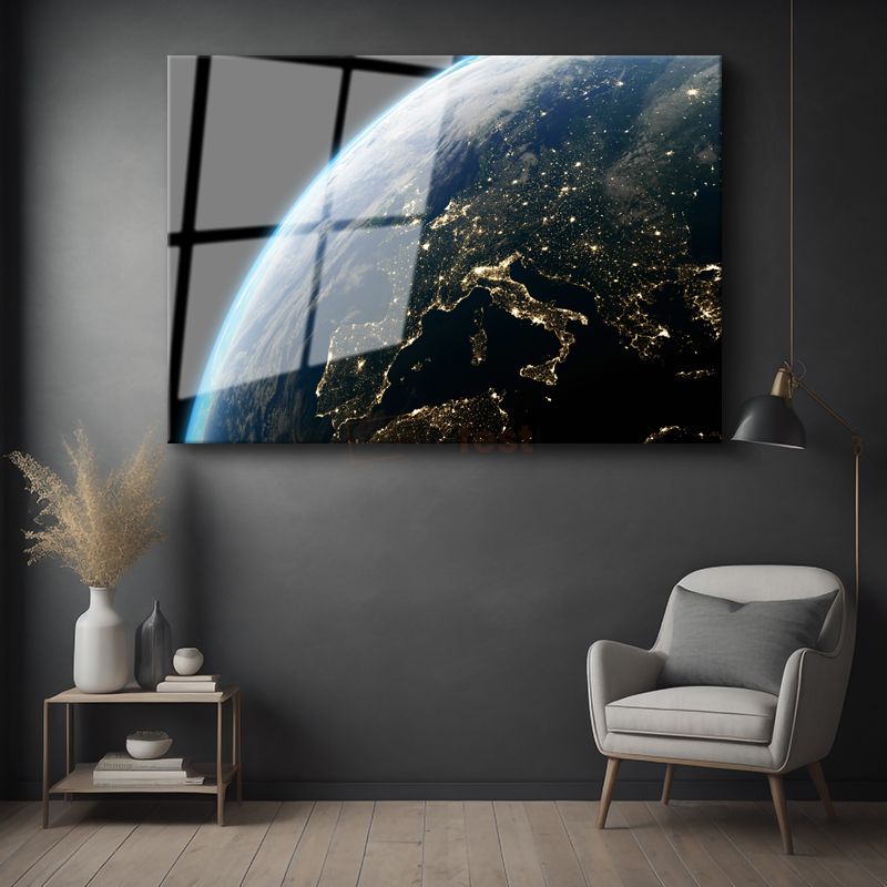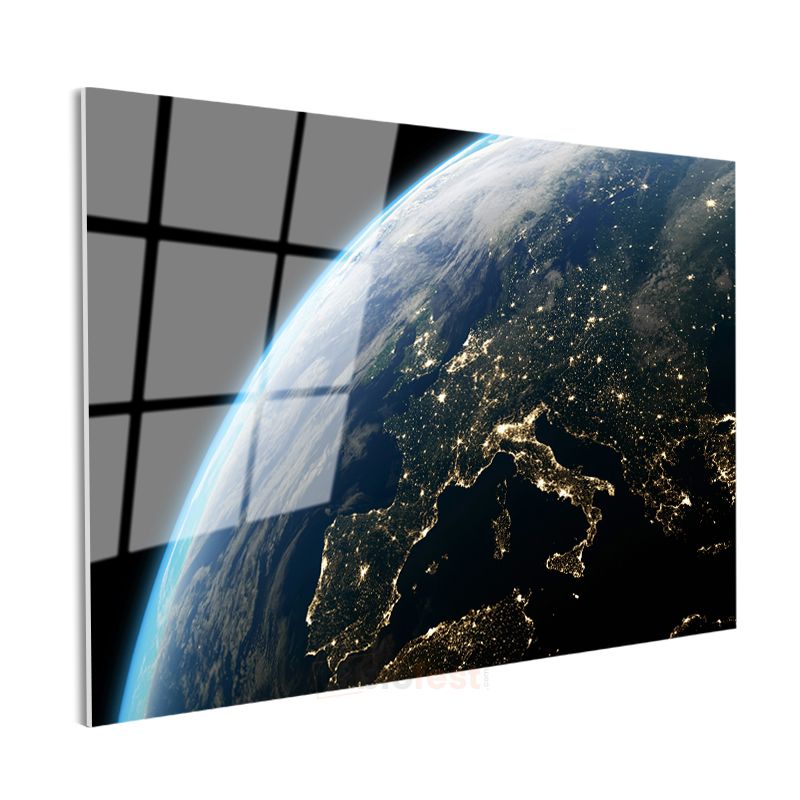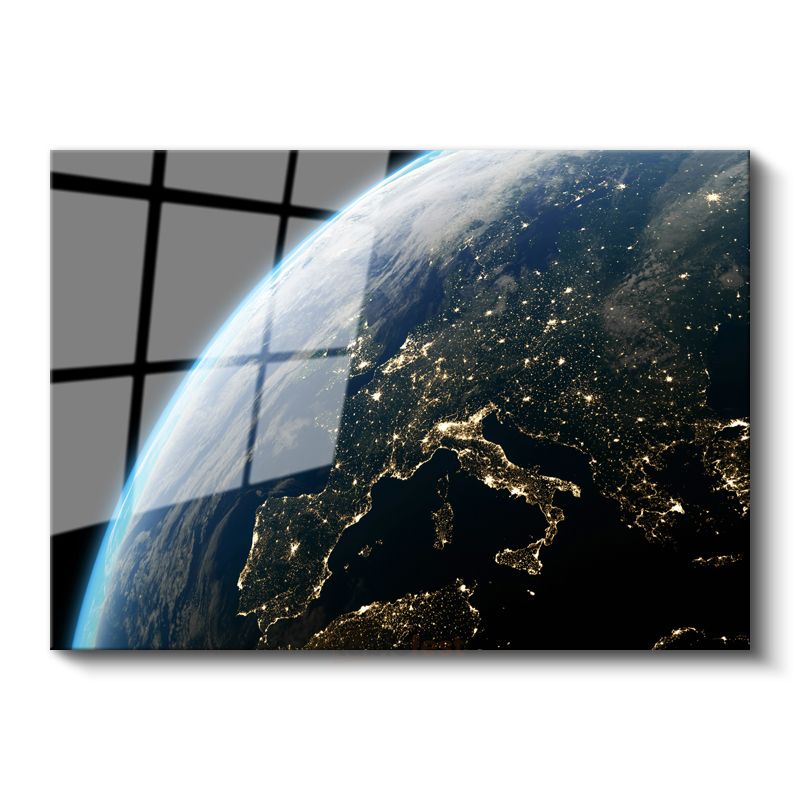 Dünya Işıkları - Gece Avrupa'nın Parıltısı Cam Tablo
