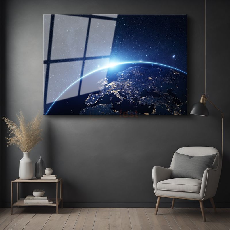 Dünya Manzarası - Gece Işıkları Cam Tablo