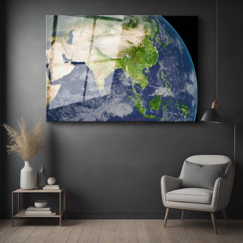 Dünya Portresi - Asya Kıtası Görünümü Cam Tablo