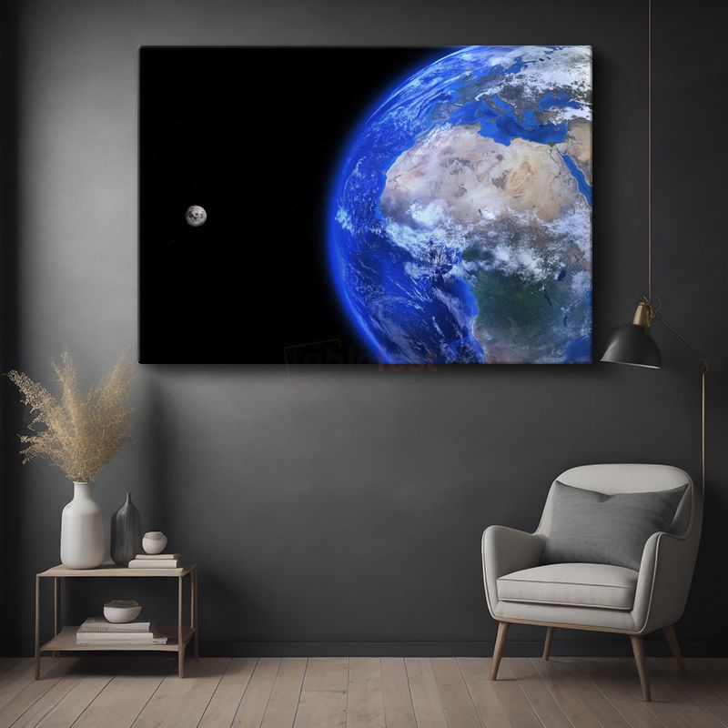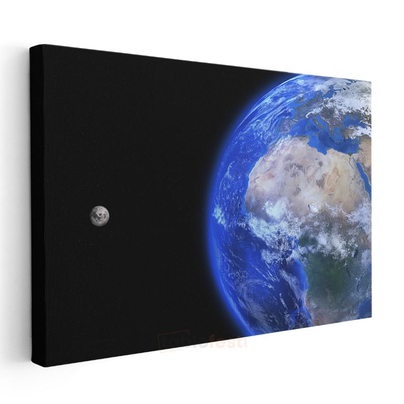 Dünya ve Ay - Uzaydan Mavi Gezegenimiz Kanvas Tablo