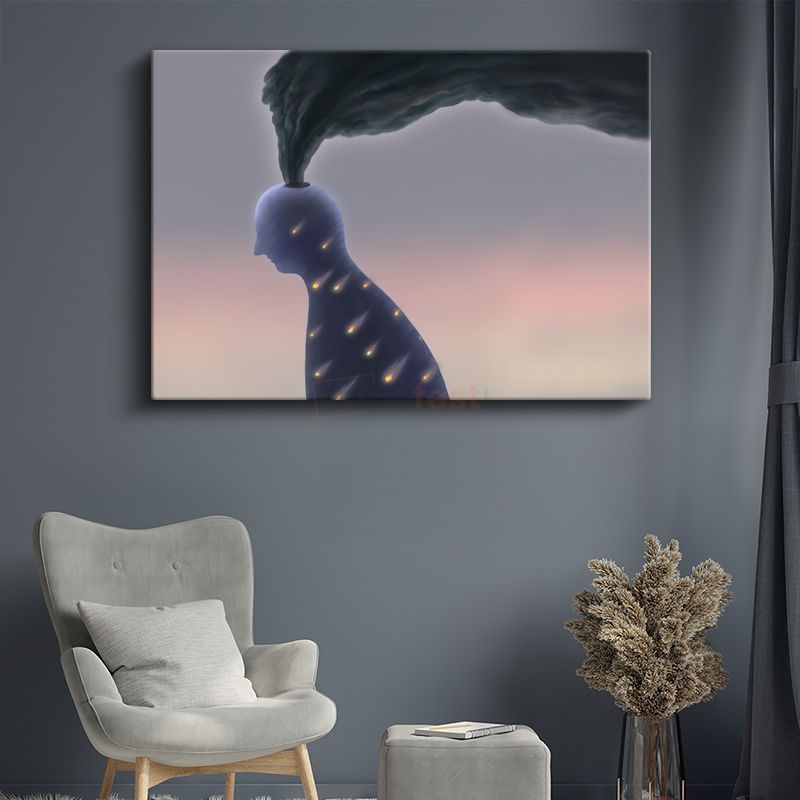 Düşünce Dumanı - İçsel Işıkları Taşıyan Zihin Portresi Kanvas Tablo