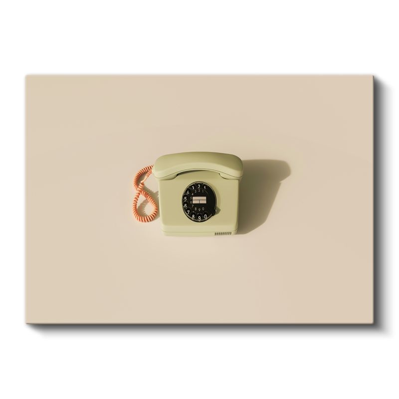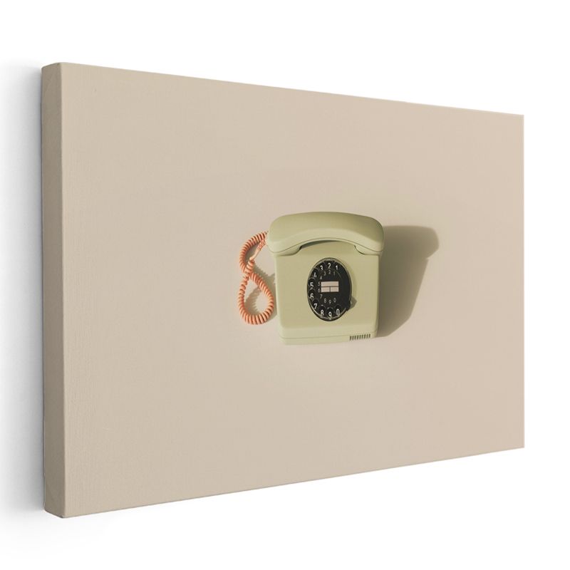 Duvar Tipi Çevirmeli Telefon - Krem Tonlu Nostaljik İletişim Kanvas Tablo