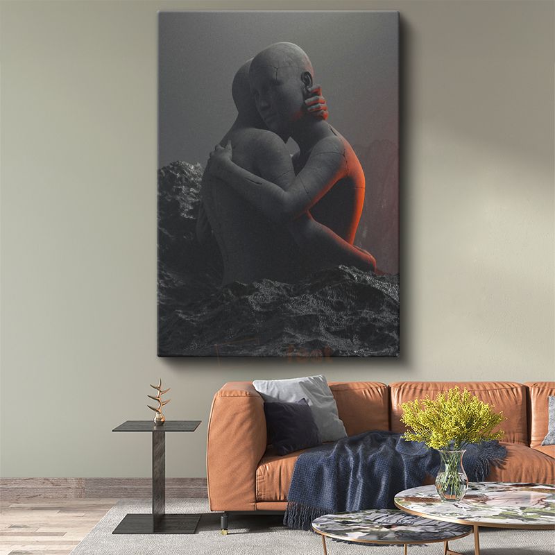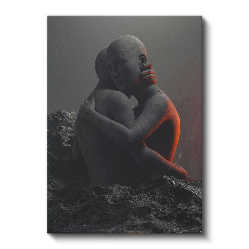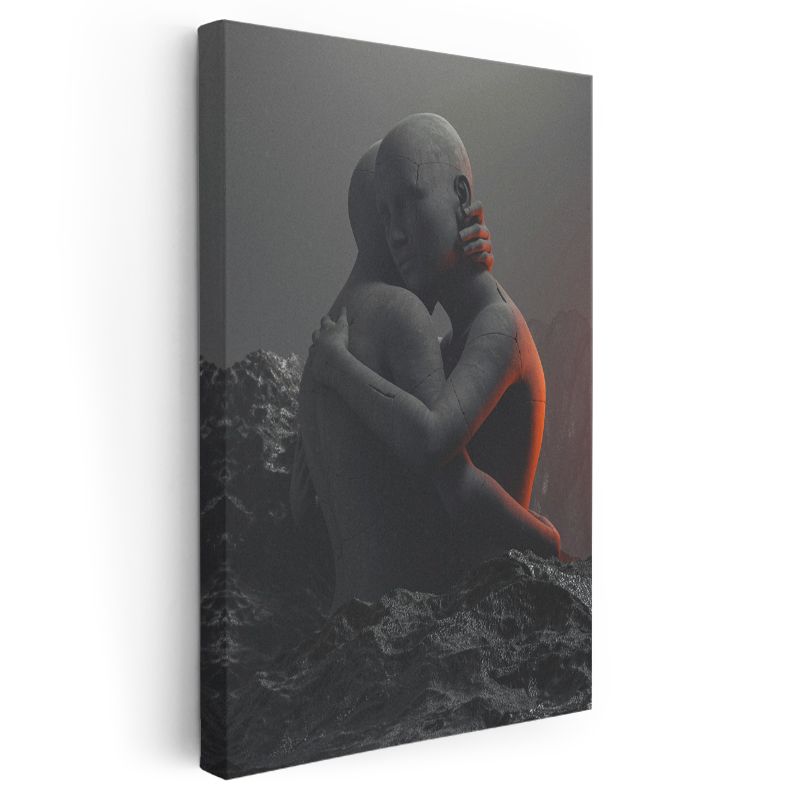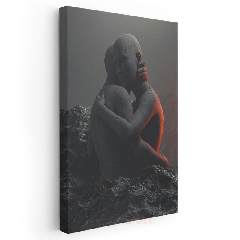 Duygusal Bağ - Minimalist Heykelsi Figür Kompozisyonu Kanvas Tablo
