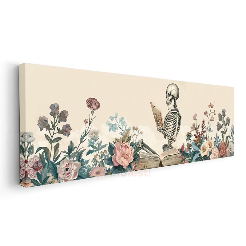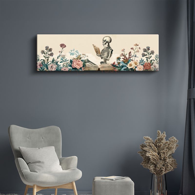 Edebiyat İskeleti - Sayfalar Arasında Kaybolan Kemikli Okur Kanvas Tablo