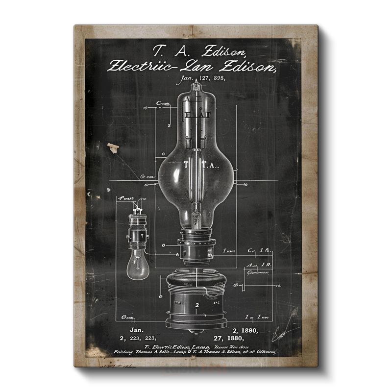Edison Ampulü - 1880 Orijinal Elektrik Lambası Patenti Kanvas Tablo