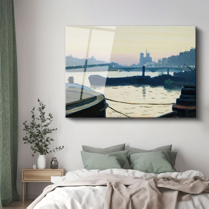 Edward Hopper - Seine Nehri Gece Görünümü Cam Tablo