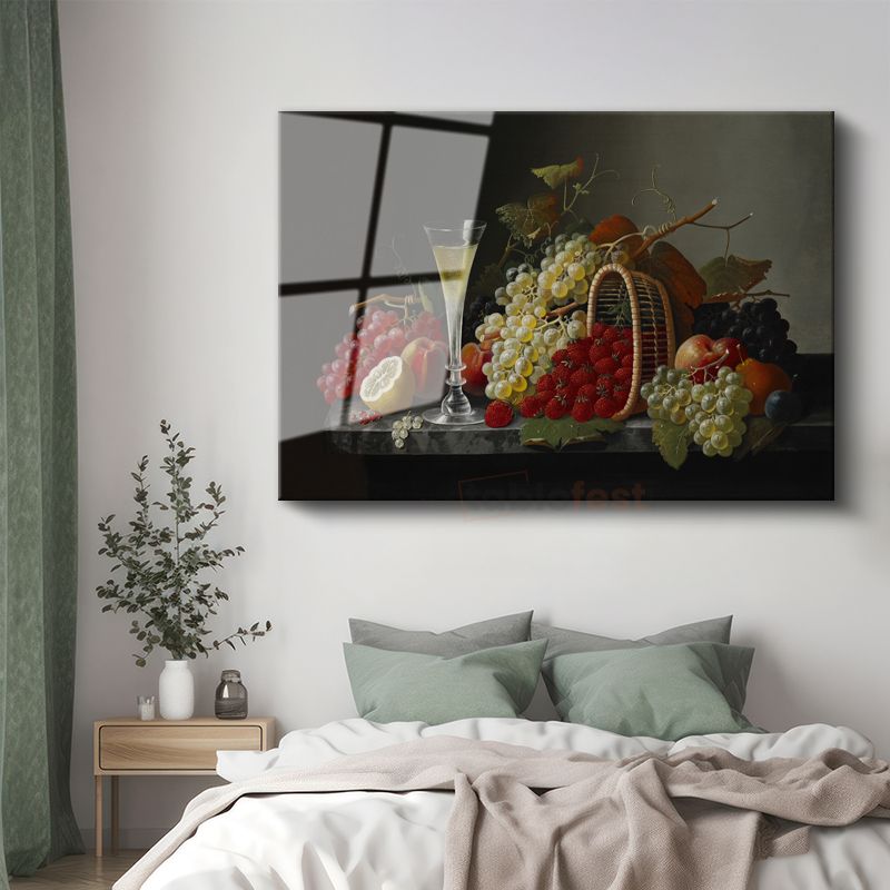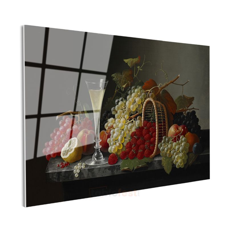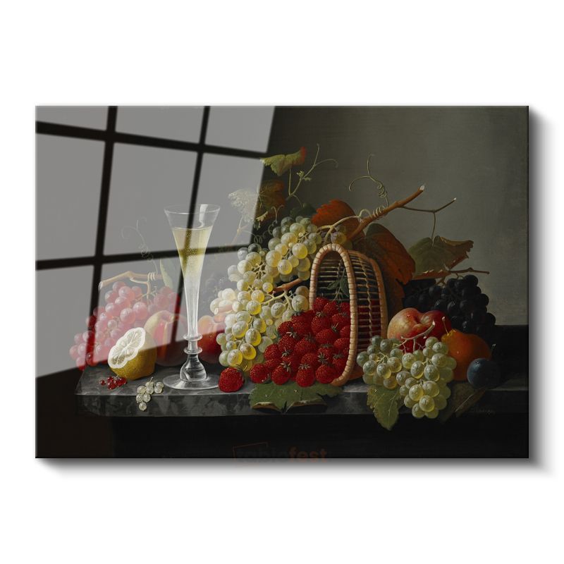 Edward Ladell - Şampanya ve Meyveler Natürmortu Cam Tablo