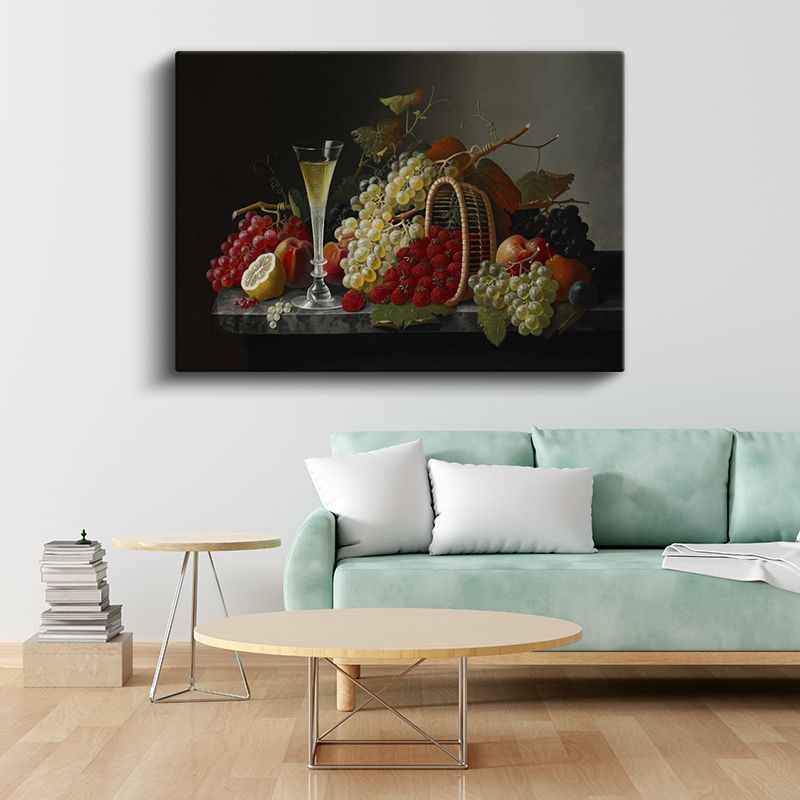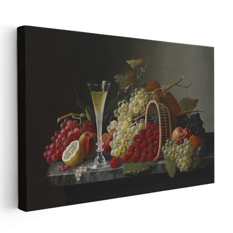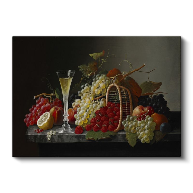 Edward Ladell - Şampanya ve Meyveler Natürmortu Kanvas Tablo