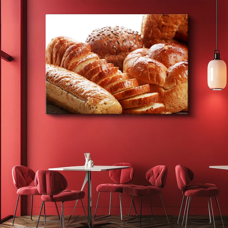 Ekmek Çeşitleri - Dilimlenmiş Farklı Formda Fırın Ürünleri Kanvas Tablo