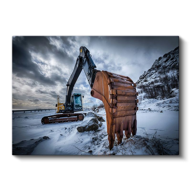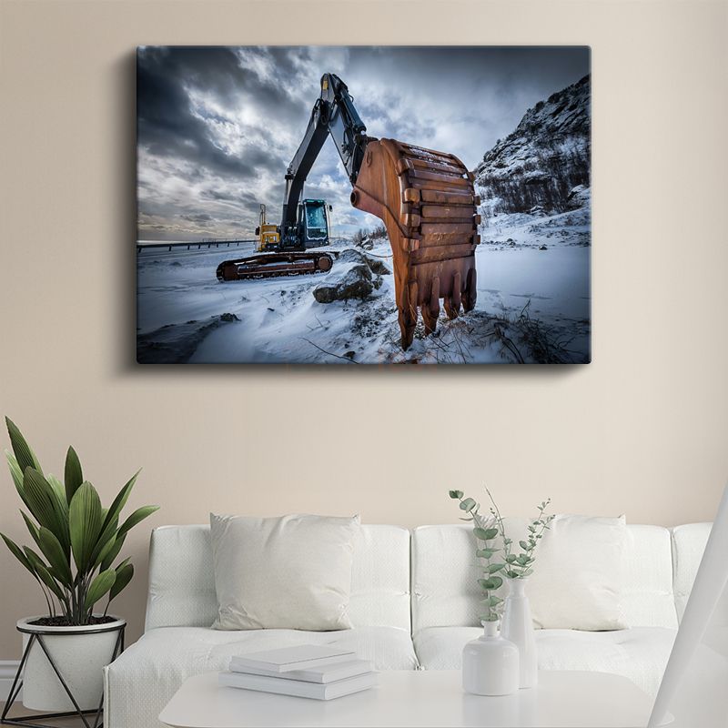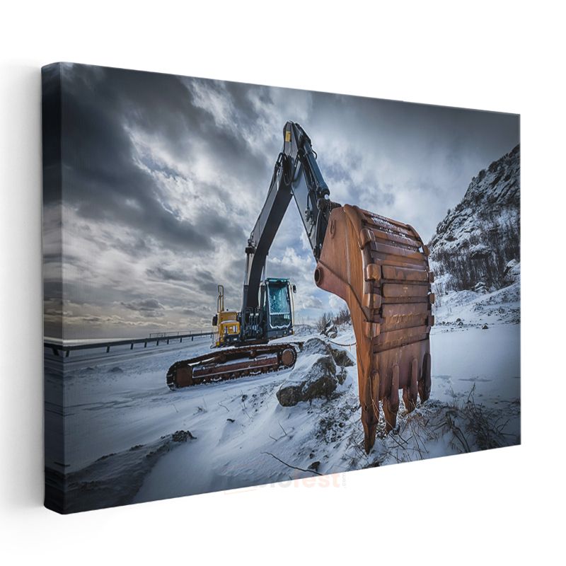 Ekskavatör - Karlı Dağ Manzarasında İş Makinesi Kanvas Tablo