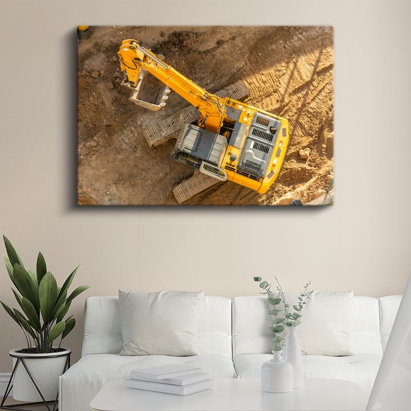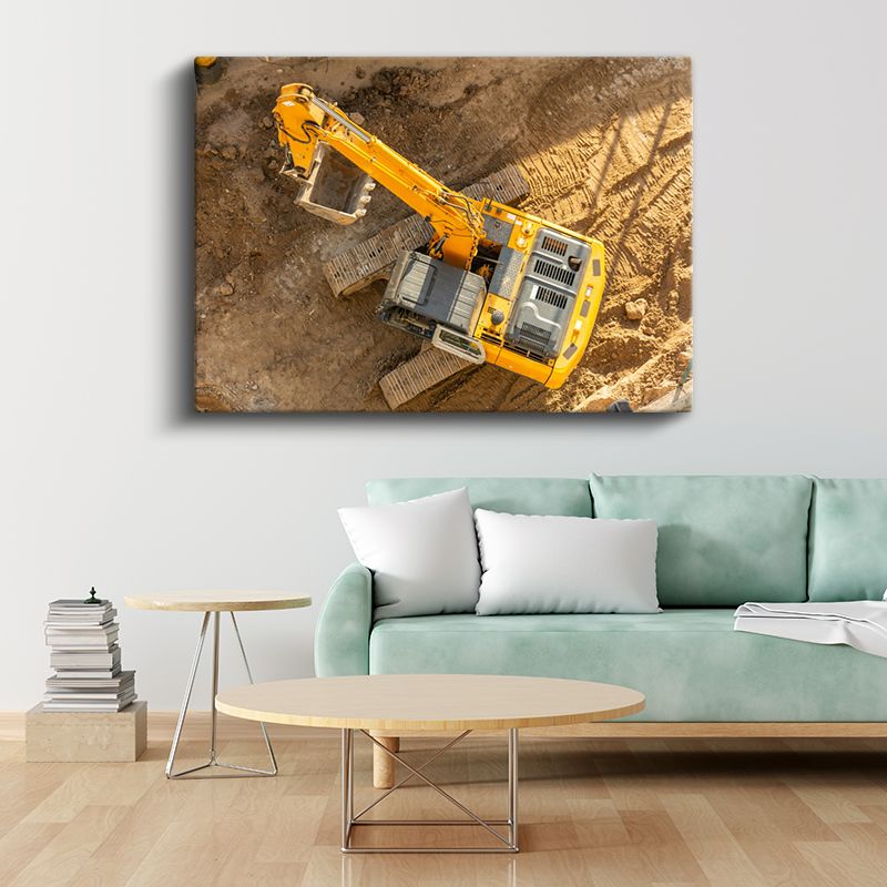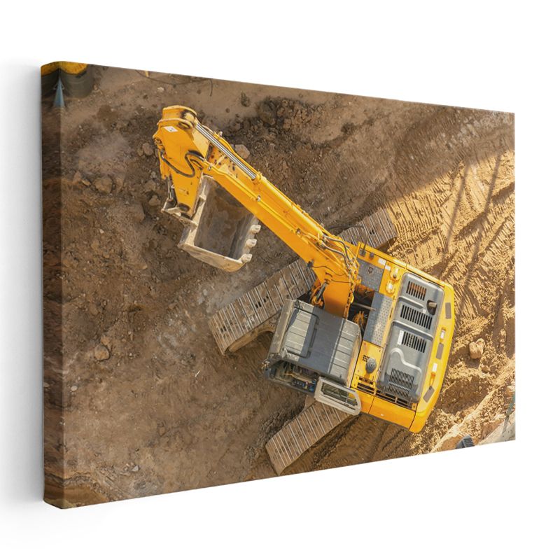 Ekskavatör - Sarı İş Makinesi Çalışma Anı Kanvas Tablo
