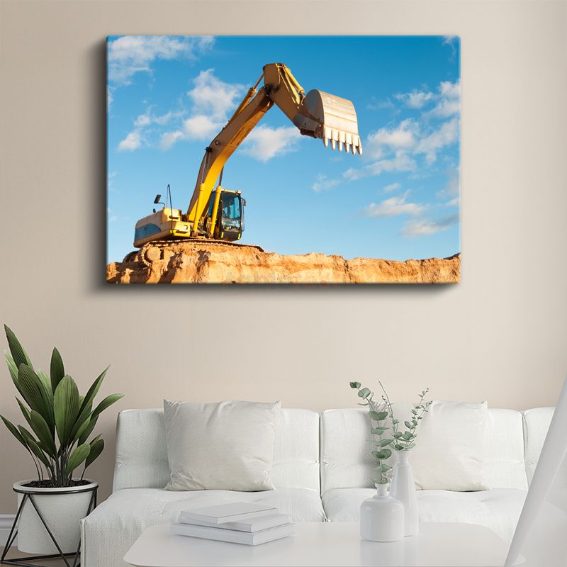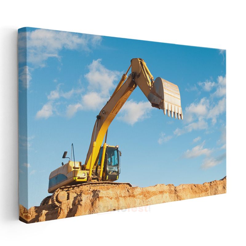 Ekskavatör - Toprak Yığınında Çalışan İş Makinesi Kanvas Tablo