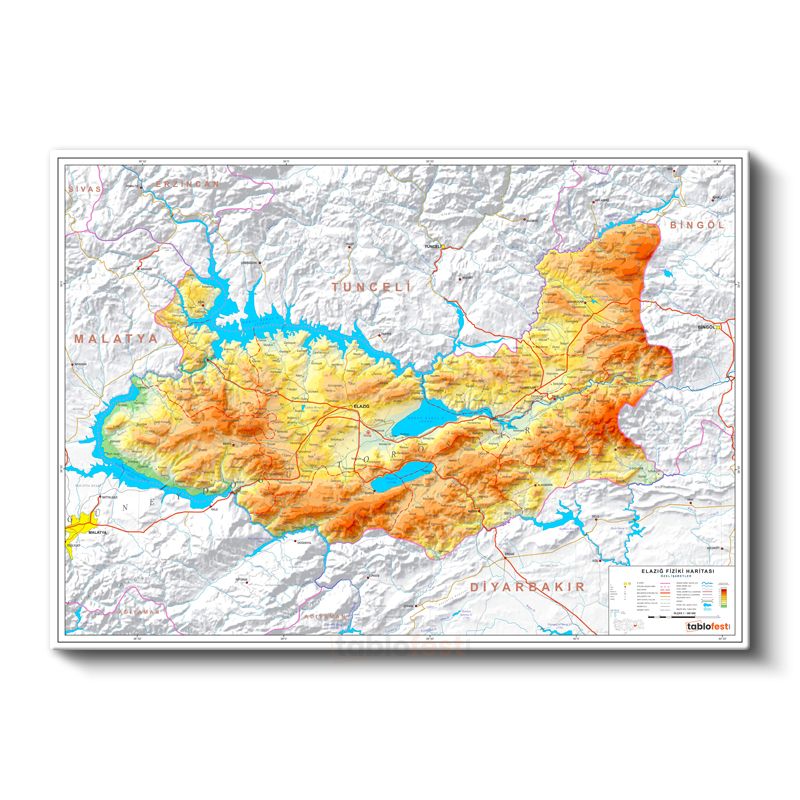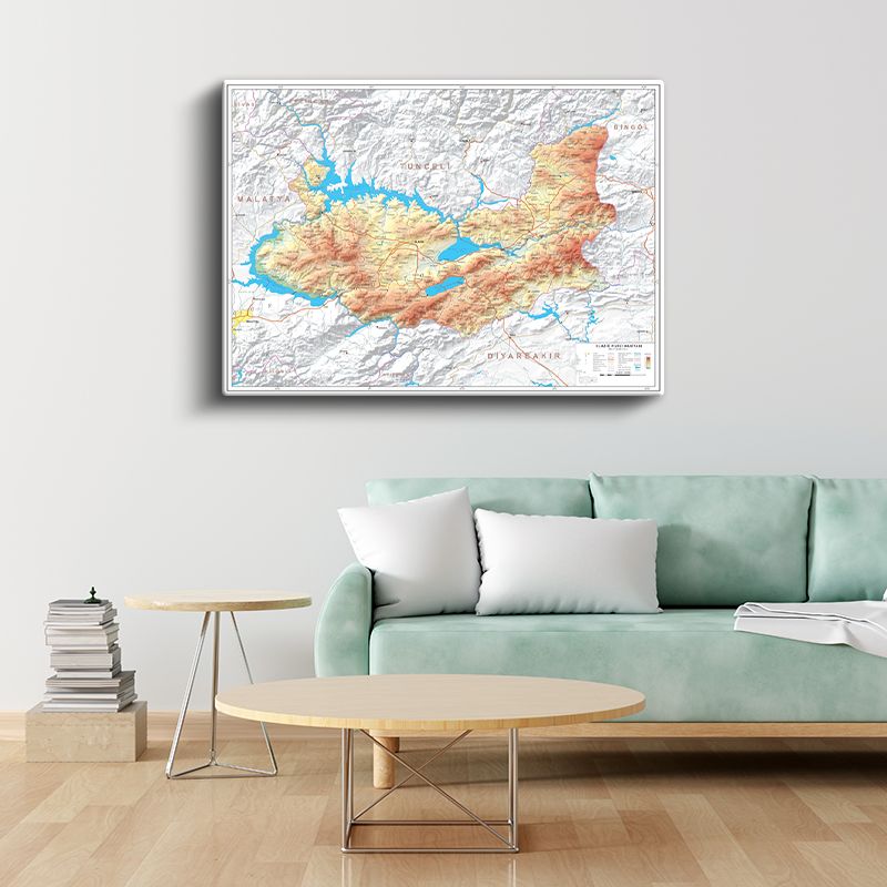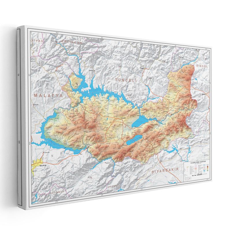 Elazığ - Fiziki Haritası Kanvas Tablo