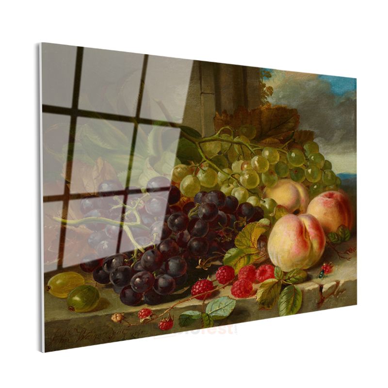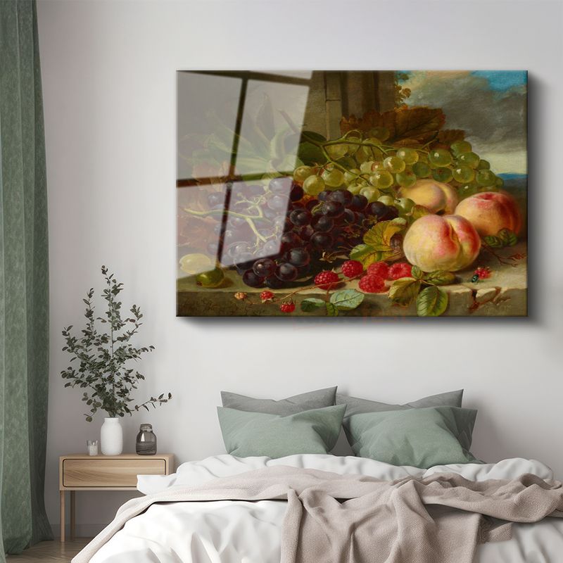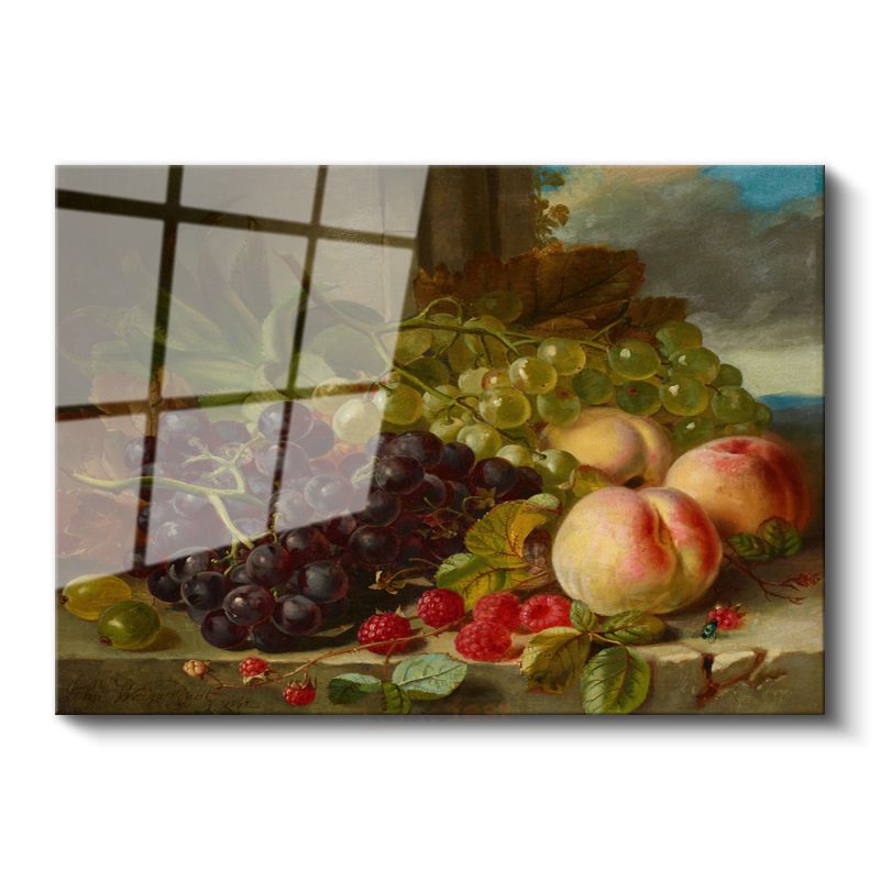Emilie Preyer - Üzüm ve Şeftali Natürmortu Cam Tablo