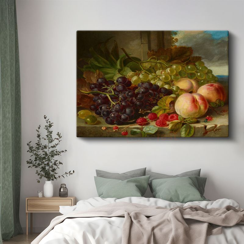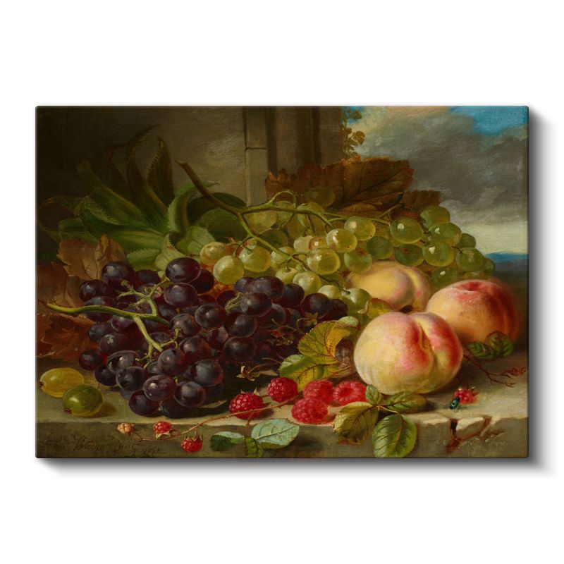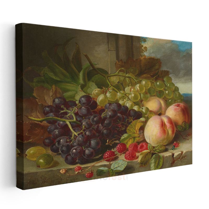 Emilie Preyer - Üzüm ve Şeftali Natürmortu Kanvas Tablo