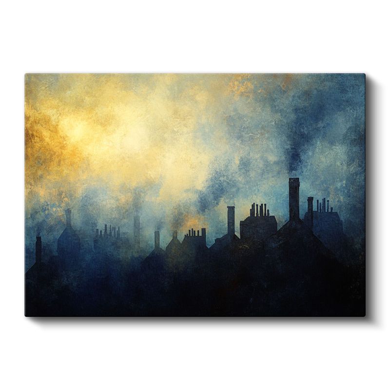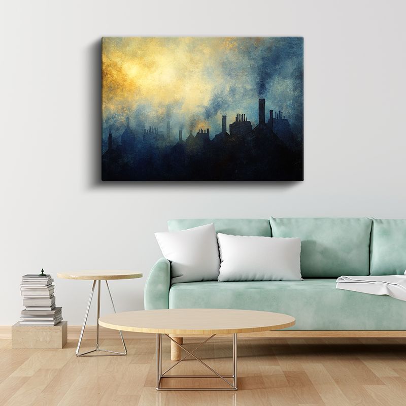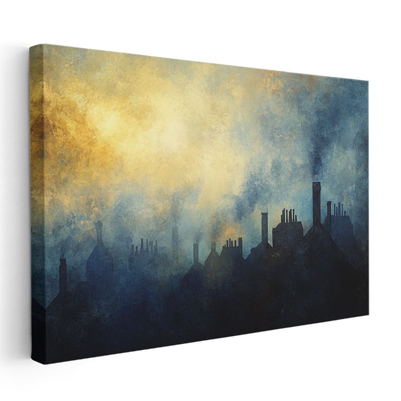 Endüstriyel Şehir Silueti - Sisli Gökyüzü Altında Çatılar Kanvas Tablo